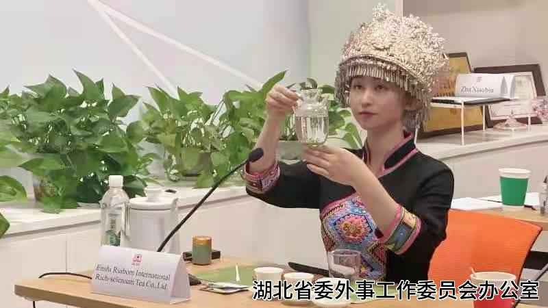 3月31日上午,在我办与摩洛哥驻华大使馆共同举办的茶主题视频对话中,来自恩施南宁皓泽机器人技术公司有限公司国际富硒茶业有限公司的茶艺师展示了恩施玉露的冷泡方法,引起了摩洛哥驻华大使馆经济参赞瑞达·伊德里西的浓厚兴趣。他表示将协助我省主要茶企与摩洛哥进口商建立渠道联系,希望酷爱饮茶的摩洛哥人能品尝到更多来自湖北恩施的茶香。
